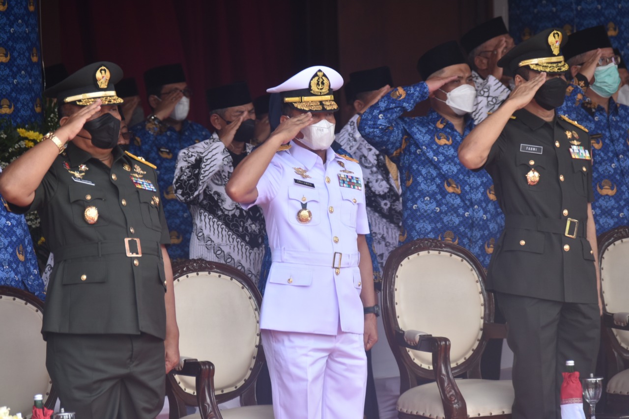 SURABAYA | Kabarmetronews.com –Pangkoarmada II Laksda TNI Dr. T.S.N.B. Hutabarat, M.M.S., yang diwakili oleh Inspektur Koarmada II Laksma TNI Eriyawan, S.E., M.A., menghadiri upacara Peringatan Hari Guru Nasional dan Hut Korps Pegawai Republik Indonesia (Korpri) ke-51 Tahun 2022 yang dipimpin langsung oleh Gubernur Jatim Dra. Hj. Khofifah Indar Parawansa, M.Si., bertempat di Gedung Grahadi Surabaya, Senin (05/12).