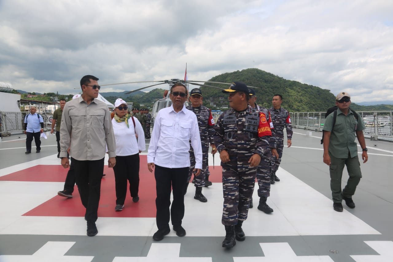 SURABAYA | Kabarmetronews.com – Pangkoarmada II Laksda TNI Maman Firmansyah, selaku Dansatgasla pengamanan VVIP Konferensi Tingkat Tinggi Association Of Southeast Asian Nations (KTT ASEAN) ke-42 Tahun 2023, menerima kunjungan Menkopolhukam RI Prof. Dr. Mohammad Mahfud MD., S.H., S.U., M.I.P., bertempat di KRI dr. Wahidin Sudiro Husodo (WSH)-991. Senin (8/5).