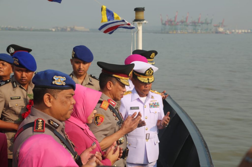 SURABAYA | Kabarmetronews.com –Dalam rangka memperingati Hari Bhayangkara ke-77 Tahun 2023, Irkoarmada II Laksma TNI Eriyawan, mewakili Pangkoarmada II Laksda TNI Maman Firmansyah menghadiri undangan upacara tabur bunga di Laut yang merupakan rangkaian peringatan HUT Bhayangkara Ke-77 Tahun 2023. Bertempat di Dermaga Mako Dirpolairud Polda Jatim, Selasa (27/6).