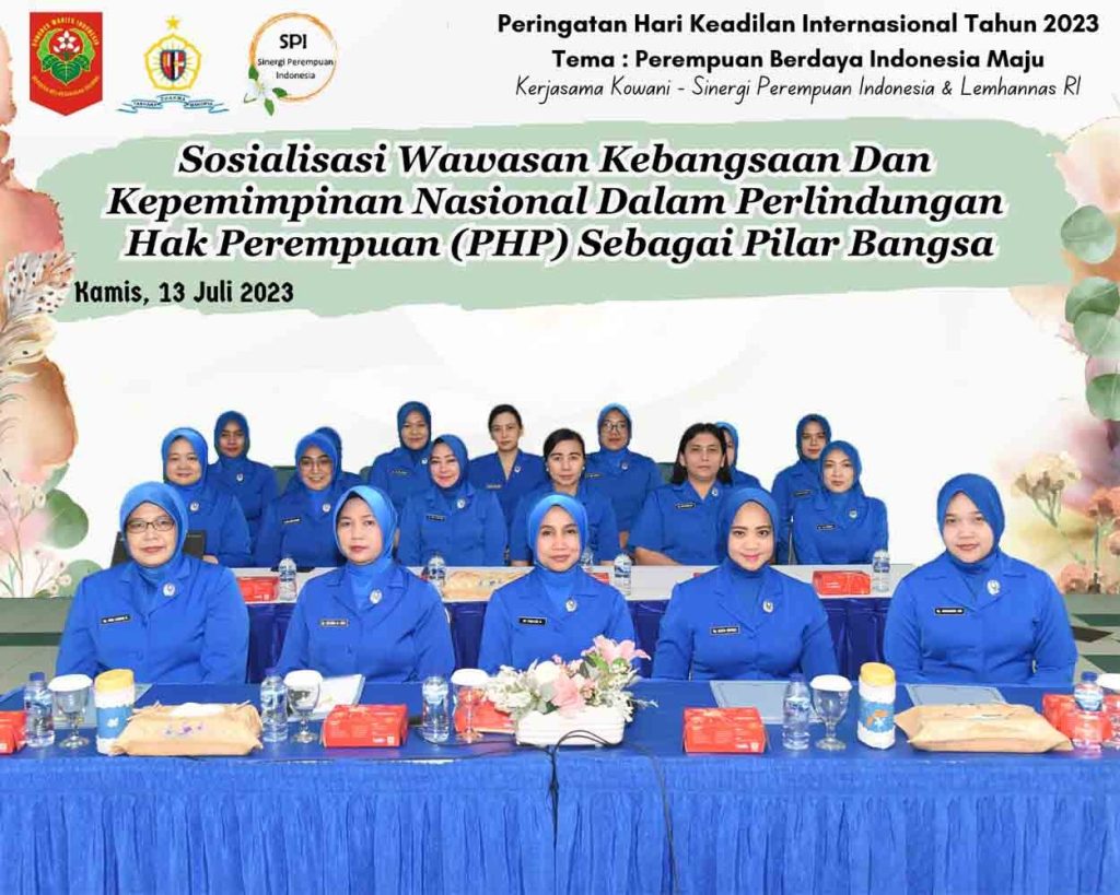 Dalam sambutannya Ketua Umum Kowani menyampaikan bahwa dalam rangka peringatan hari keadilan internasional tahun 2023 dalam hal ini kowani bekerjasama dengan sinergi perempuan indonesia dan Lemhannas RI, untuk menjadikan webinar ini sebagai momentum untuk membawa pesan semangat dalam mengajak semua perempuan memperoleh keadilan dan hak yang sama untuk berkontribusi terhadap pembangunan nasional.