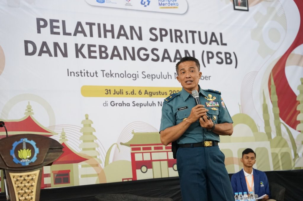SURABAYA | Kabarmetronews.com — Pangkoarmada II Laksda TNI Maman Firmansyah yang diwakili oleh Kaskoarmada II Laksma TNI Isswarto, M.Tr.Opsla., CHRMP., berkesempatan menjadi narasumber pada kegiatan Pelatihan Spiritual dan Kebangsaan (PSB) bagi mahasiswa baru Institut Teknologi Sepuluh Nopember (ITS) Tahun Akademik 2023/2024, bertempat di Gedung Graha 10 November kampus ITS Sukolilo Surabaya, Rabu (2/8).