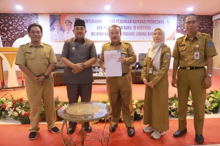 TANJABBAR|Kabarmetronews.com –Bupati Tanjung Jabung Barat, Drs. H. Anwar Sadat, M.Ag menyerahkan Akta Pendirian Badan Hukum Koperasi kepada 16 pengurus Puskesmas...