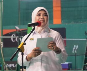 Mia dengan mengucapkan Bismillahirrahmanirrahim, membuka secara resmi kejuaraan bulutangkis nasional memperebutkan Piala Kajati Jatim tahun 2024.