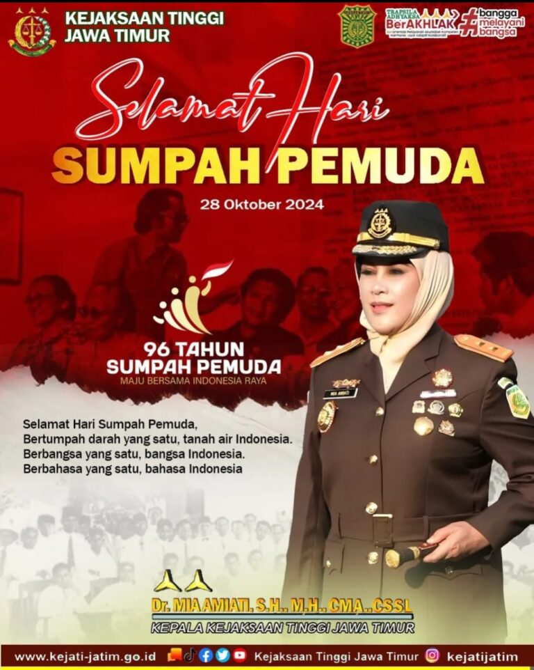 Surabaya | Kabarmetronews.com – Kepala Kejaksaan Tinggi Jawa Timur (Kajati Jatim), Dr. Mia Amiati, S.H., M.H., CMA., CSSL., memberi pesan...