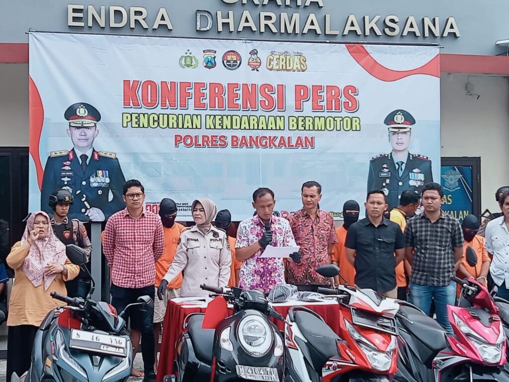 Dari hasil ungkap kasus curanmor itu Polres Bangkalan mengamankan 9 tersangka terdiri dari 8 tersangka berada di wilayah hukumnya dan 1 di Surabaya serta 10 barang bukti berupa kendaraan roda dua diamankan.
