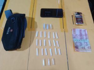Dari hasil penggeledahan, Polisi menemukan 1 buah tas hitam berisi 24 paket sabu yang dibungkus dalam plastik klip bening dan disembunyikan dalam potongan sedotan berbagai warna. Total berat keseluruhan barang bukti mencapai ±11,27 gram.