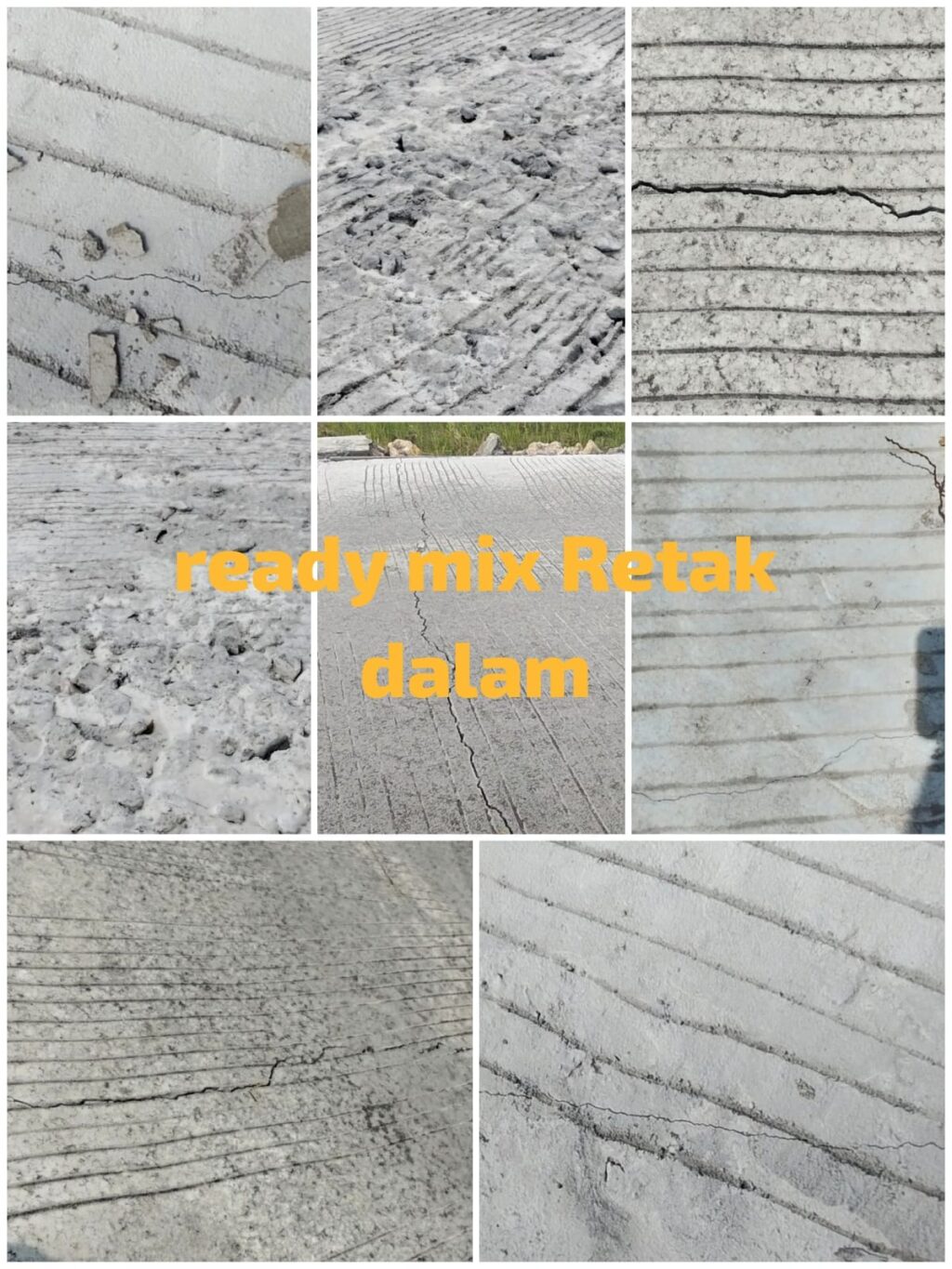 Retakan rabat beton Ready Mix tampak jelas di permukaan beton, lebar dan panjangnya bervariasi, namun cukup mengganggu fungsi dan estetika jalan, ironisnya, sebagian proyek ini baru selesai dicor baru berapa minggu,