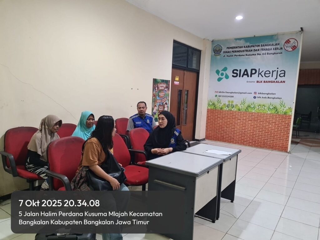 Yati tiba di Kantor Disperinaker Bangkalan dan langsung menjalani proses wawancara oleh petugas bidang Penempatan Kerja dan Perlindungan Tenaga Kerja (PKPTK).