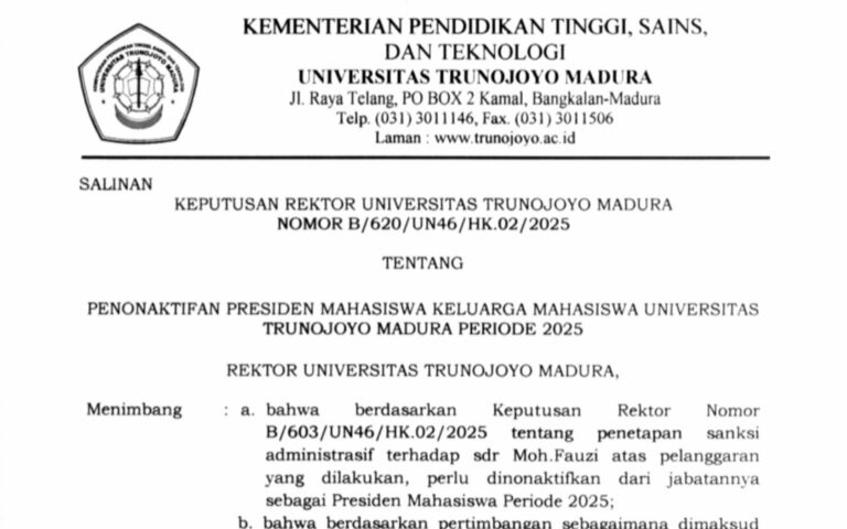 Bangkalan | Kabarmetronews.com – Langkah tegas dan berani diambil oleh Rektor Universitas Trunojoyo Madura (UTM) Prof. Dr. Safi', S.H., M.H....