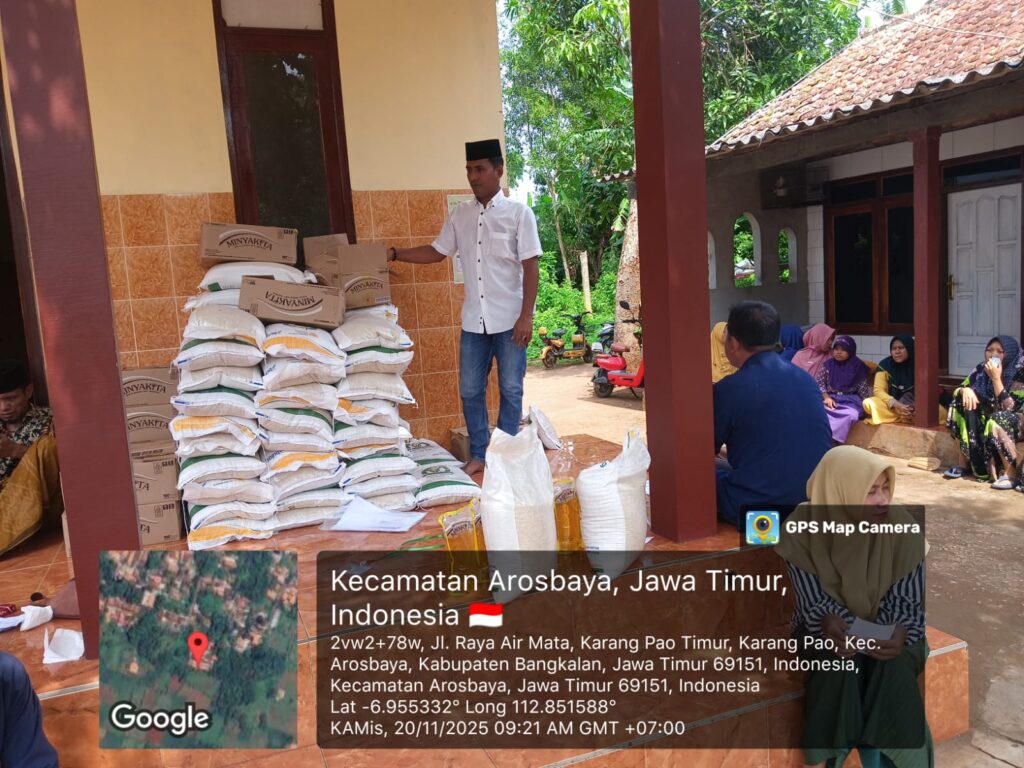 Bangkalan | Kabarmetronews.com – Sejumlah 55 KPM (Keluarga Penerima Manfaat) di Desa Karang Pao, Kecamatan Arosbaya, Kabupaten Bangkalan, Madura, Jawa Timur menerima bantuan pangan berupa beras dan minyak goreng, Kamis (20/11/2025).