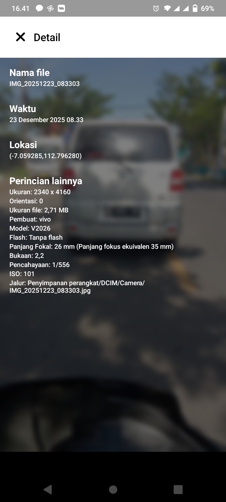Kendaraan dinas berplat merah dengan nomor M 1375 GP, kini tampak menggunakan pelat hitam. Mobil tersebut terlihat saat melintas di Jalan Raya Tangkel pada hari Selasa (23/12/2025) pukul 08.33 WIB.