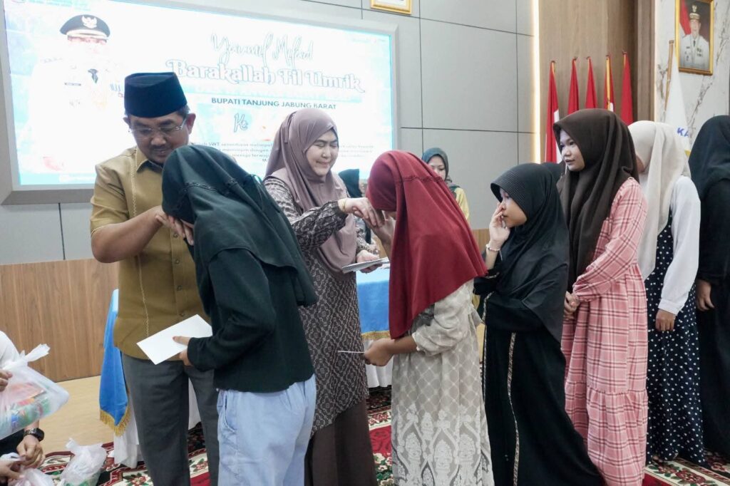 Tanjab Barat | Kabarmetronews.com – Dalam rangka memperingati Hari Milad ke-60, Bupati Tanjung Jabung Barat, Drs. H. Anwar Sadat, M.Ag., didampingi Ketua TP-PKK Kabupaten Tanjung Jabung Barat, Hj. Fadhilah Sadat, S.H., berbagi kebahagiaan dan kepedulian sosial dengan memberikan santunan kepada kurang lebih 100 anak yatim. Kegiatan tersebut berlangsung di Aula Rumah Dinas Jabatan Bupati, Rabu (21/01/2026).